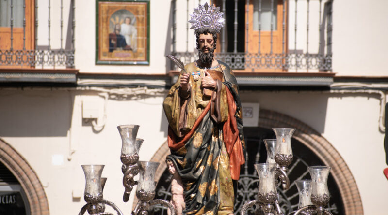 El equipo de Priostia de San Mateo Evangelista ha procedido al cambio de estructura del altar de su titular, colocando sobre fondo color burdeos un nuevo y elegante Dolsel.